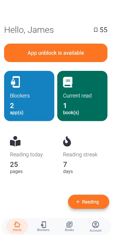 Apps unlock only after you complete your reading goal.